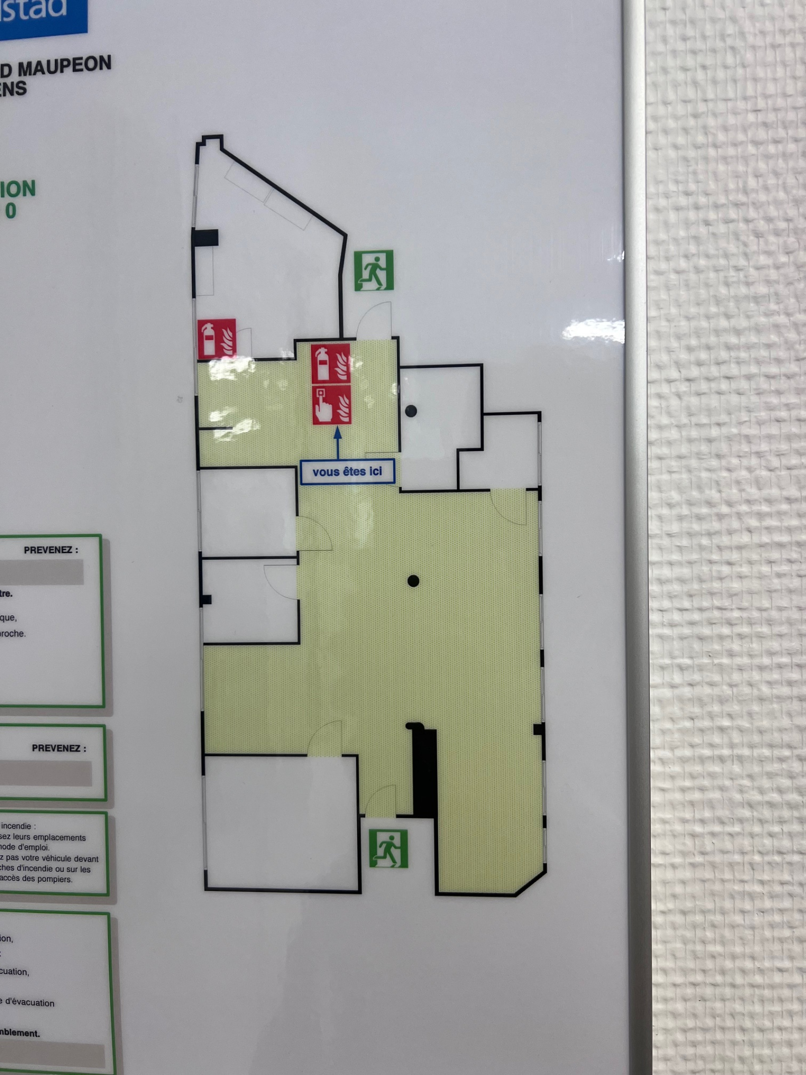 Configuration : open space, bureaux cloisonnés, salle de réunion, accueil, une kitchenette, sanitaires, réserves.
