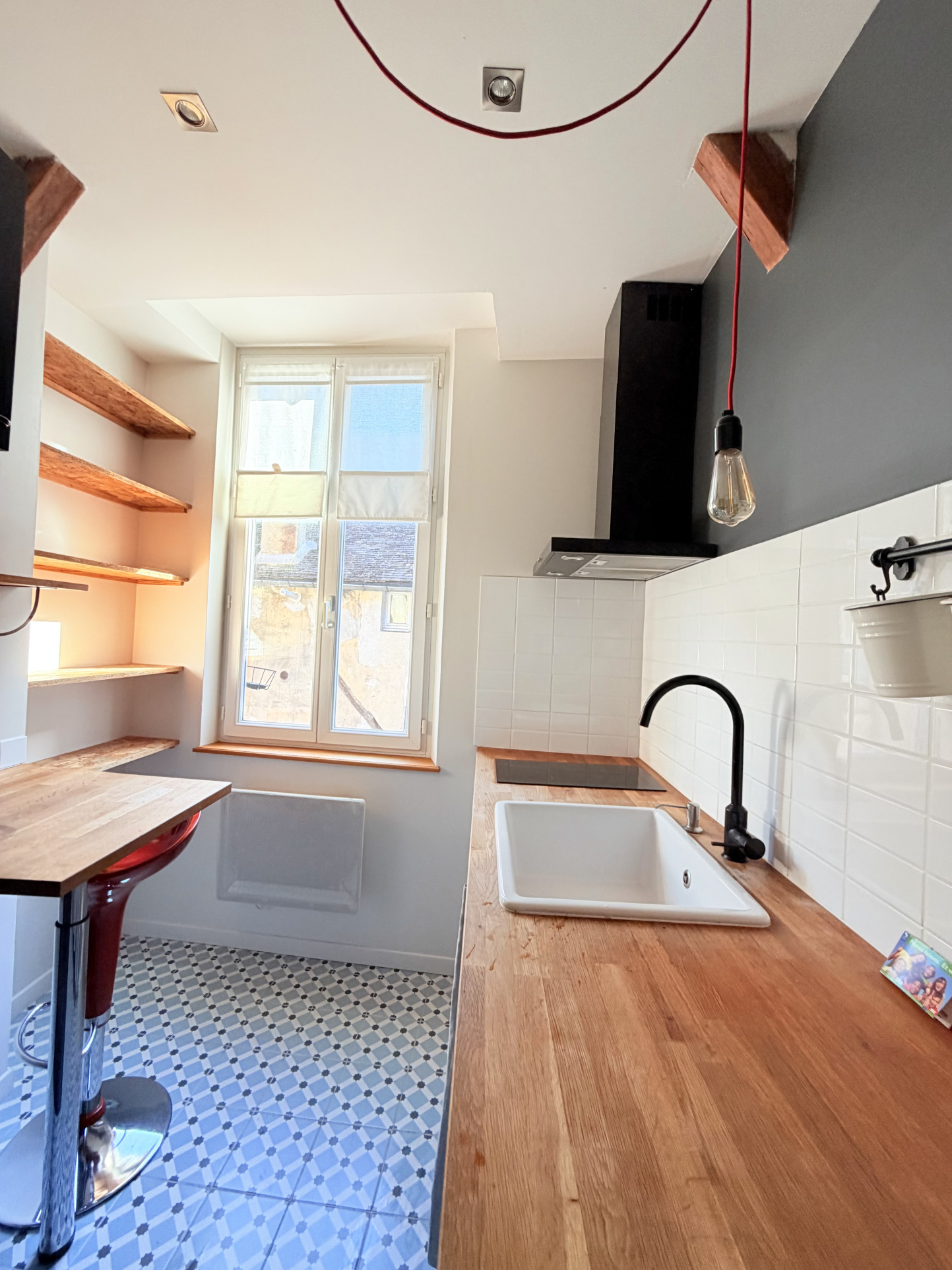 Situé au 1er étage, l’appartement est très lumineux et se compose d’un grand salon séjour, d’une chambre, d’une cuisine indépendante, ainsi que d’une salle d’eau avec WC. Le logement dispose également de nombreux rangements et est propre et bien entretenu.