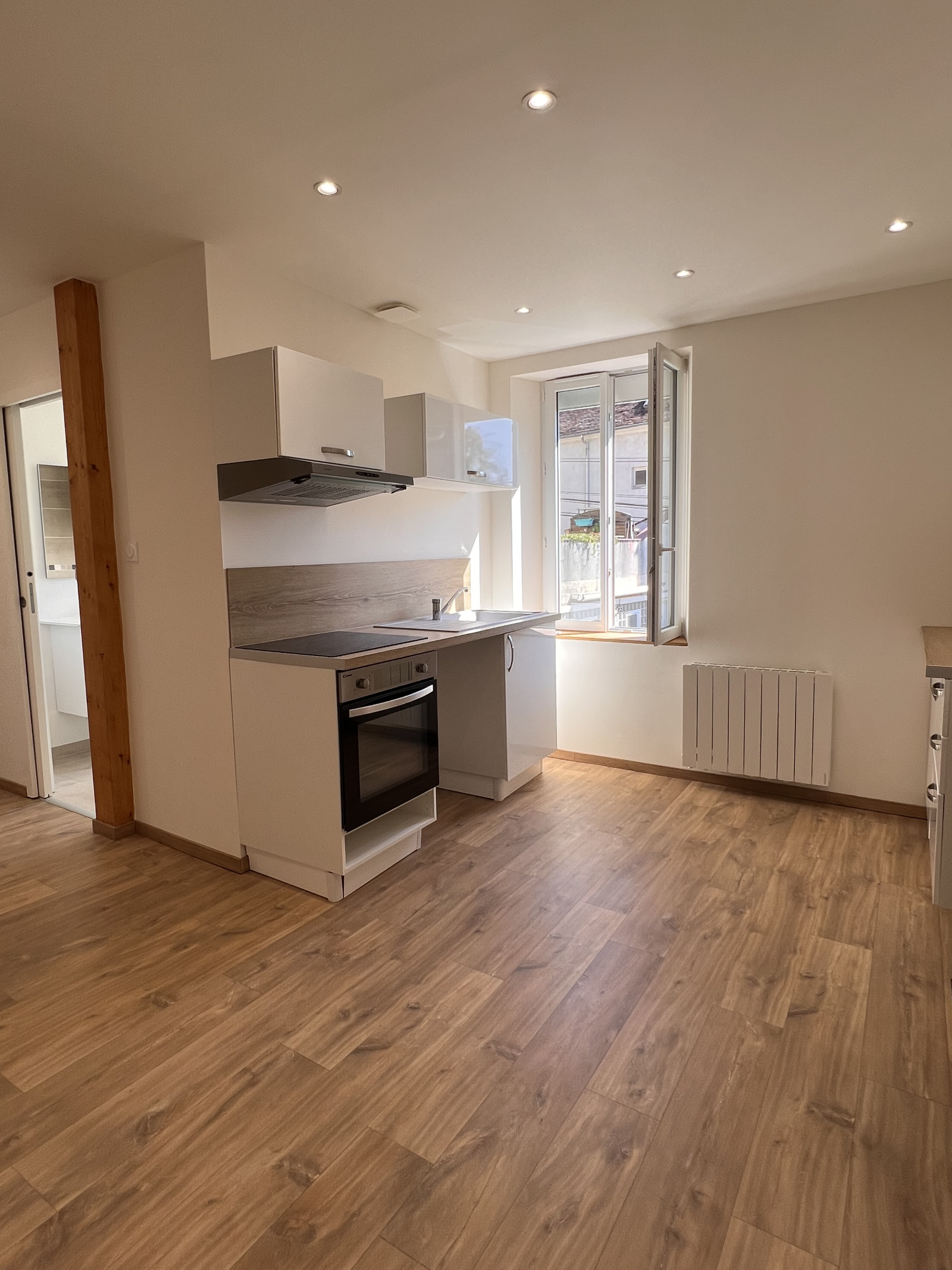 Un appartement de type trois pièces lumineux et moderne, situé à proximité des commerces et transports, comprenant un salon, une cuisine équipée ouverte , deux chambres, une salle d'eau avec wc.
