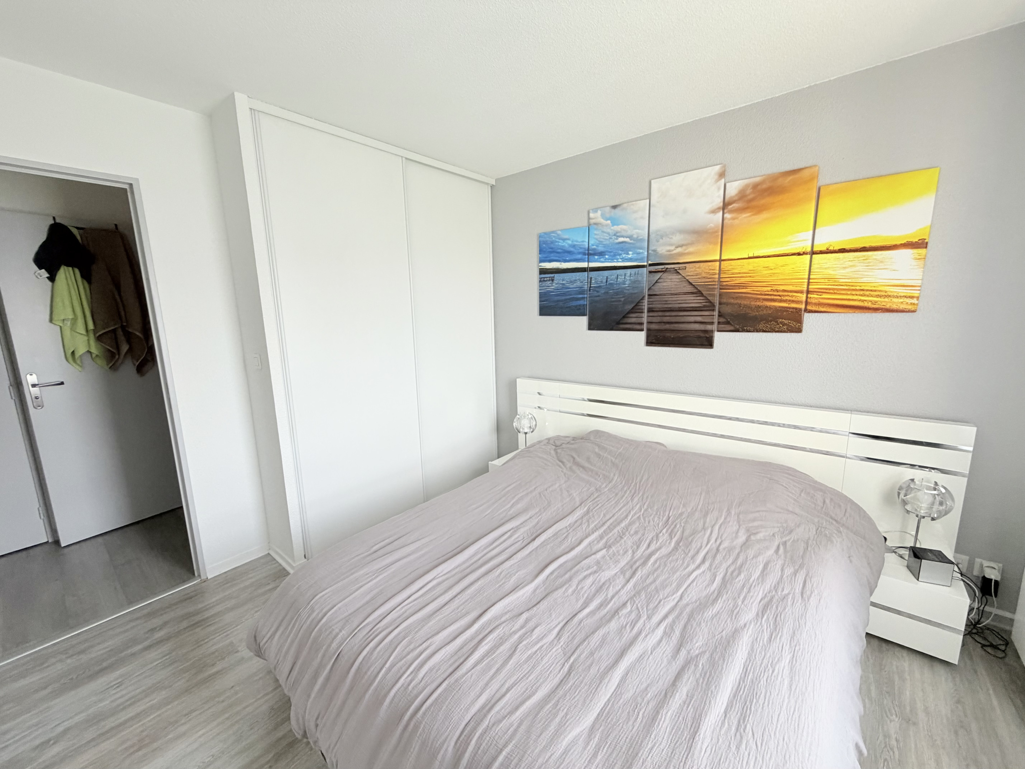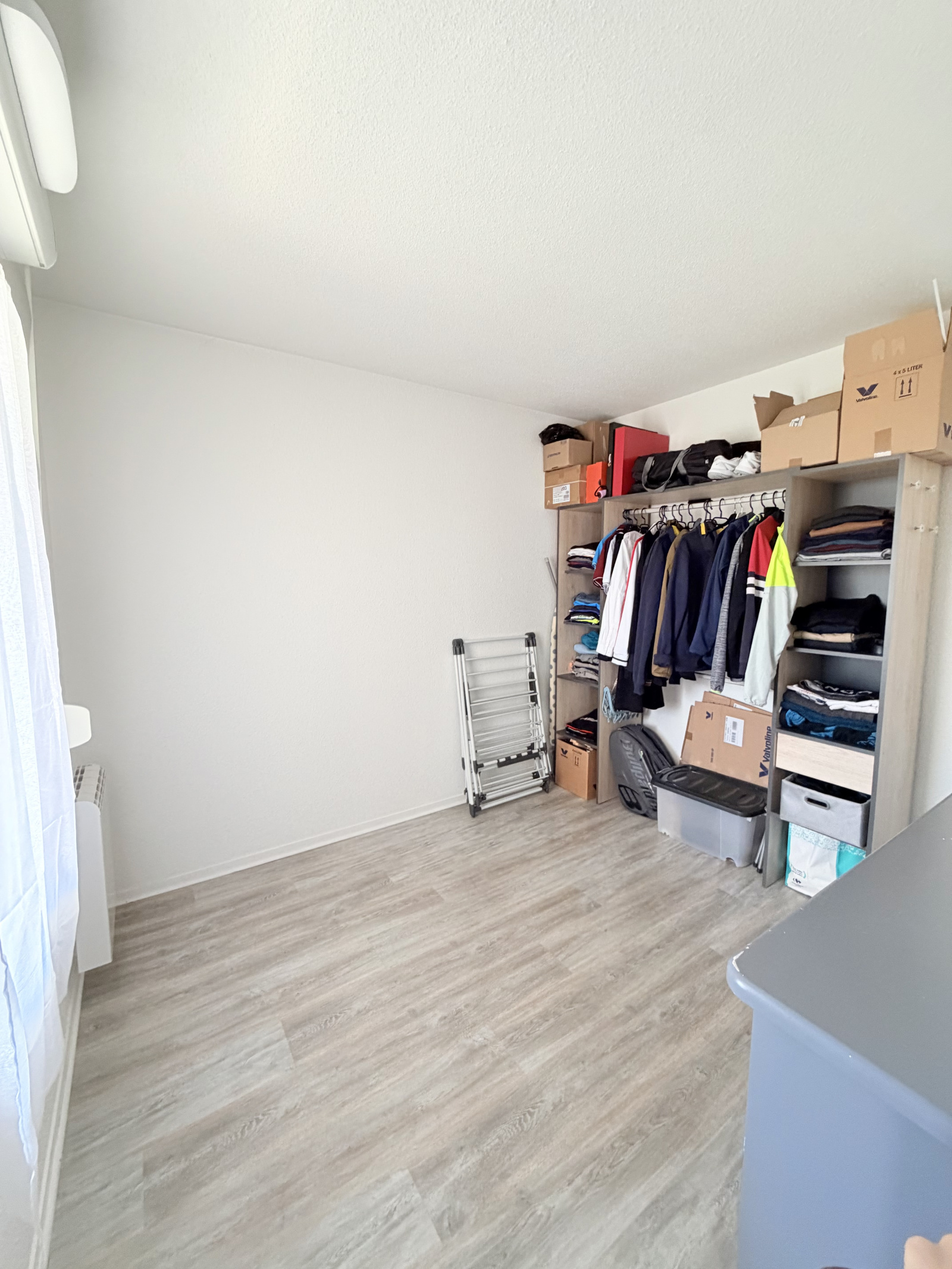 L’appartement dispose également de nombreux rangements avec de grands placards dans l’entrée et la chambre.