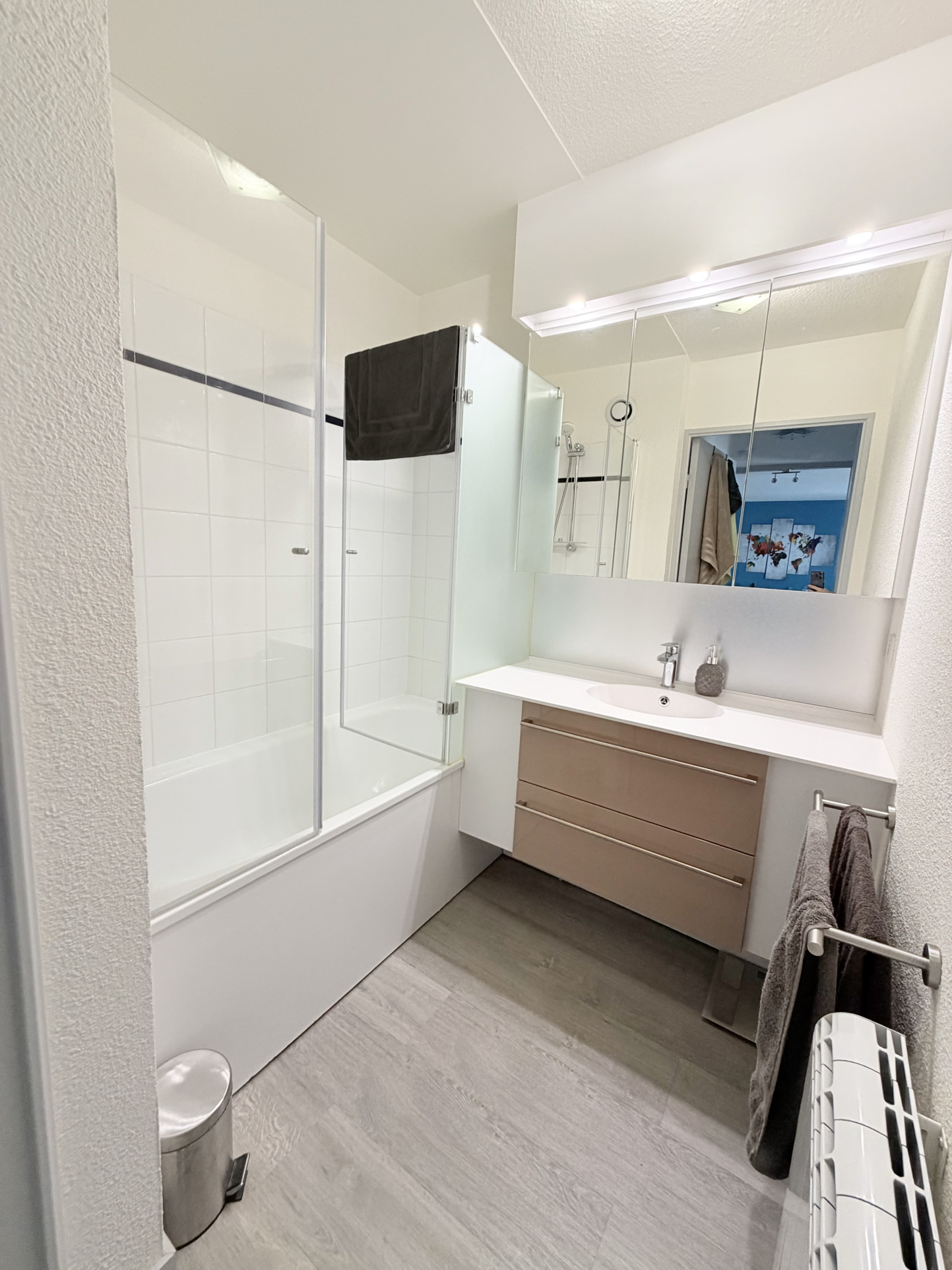Il se compose d’un spacieux salon/séjour de 26 m², entièrement meublé avec des équipements de qualité, d’une cuisine équipée (réfrigérateur, lave-vaisselle, lave-linge), d’une chambre, d’une salle d’eau, ainsi que d’un bureau ou dressing pouvant faire office de seconde chambre.