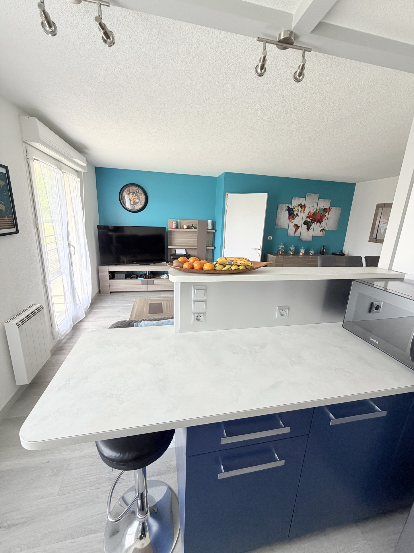 Situé dans une résidence sécurisée avec portail électrique et interphone, au 1er étage, bel appartement meublé de 54 m², disponible à partir du 16 mai.