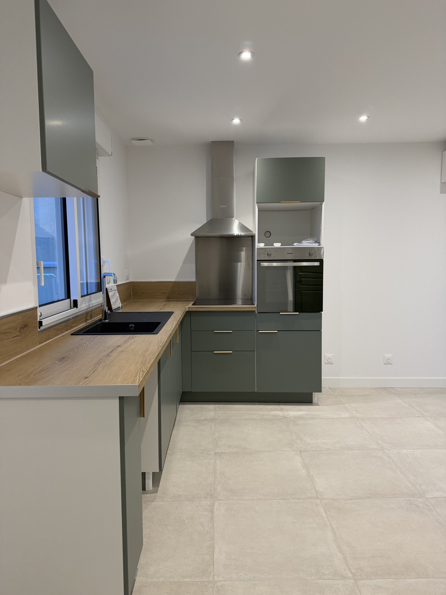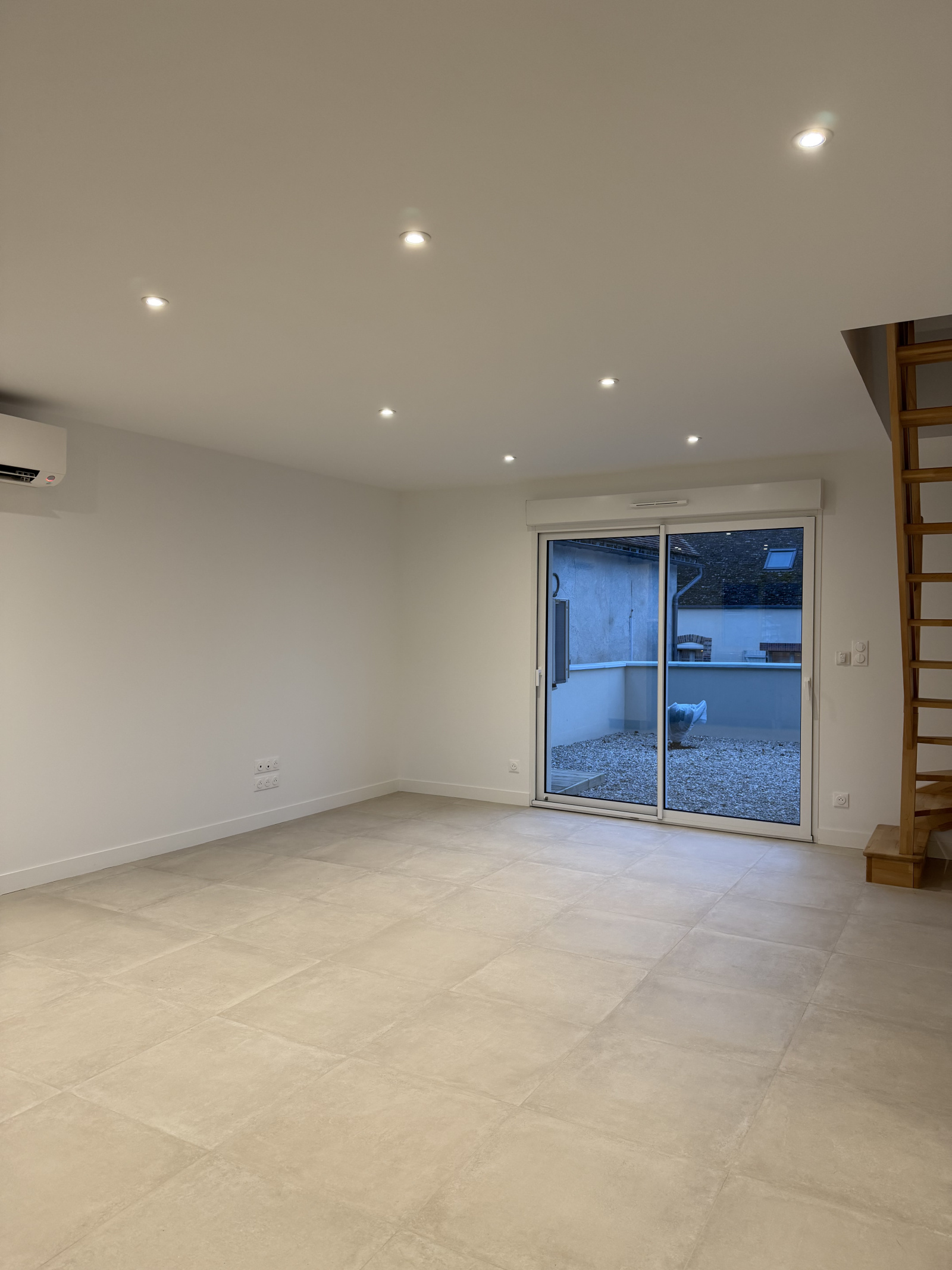 Elle se compose, au rez-de-chaussée, d’un salon-séjour avec cuisine ouverte, aménagée et équipée, d’une chambre, d’une salle d’eau et d’un WC indépendant.