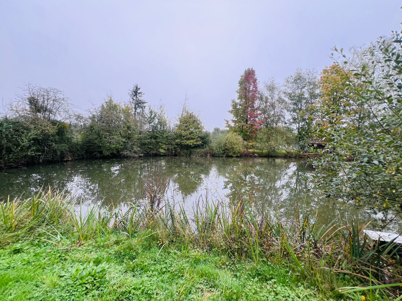 Le terrain est clos et arboré. Il s'y trouve un étang et une marre. Et aussi un enclos et un abri pour animaux, possibilité d'adopter les deux anes et trois moutons résidents.
