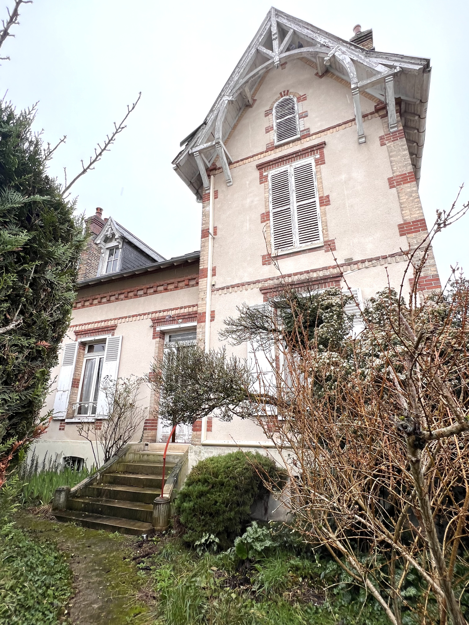 Maison bourgeoise de style anglo-normande de 192 m² habitables, située à Sens dans un quartier recherché desservi par le bus et la gare ( 55 min Paris Bercy ), autoroutes A19 A5 A6. Elle se compose d'une entrée avec carreaux de ciment, d'un séjour et d'une salle à manger avec parquet et cheminées décoratives, une cuisine aménagée, une vaste chambre de plain pied et sa salle d'eau privative. Un étage comprenant quatre chambres, une salle de bains et une salle d'eau, dressing. Un second étage avec une pièce de loisirs de 21m². Un sous-sol complet: cave voûtée, buanderie, chaufferie, rangement. Communiquant avec la propriété se trouve une boutique et son arrière-boutique. Le tout sur 300 m² de terrain clos arboré et ensoleillé. Commerces et commodités à pied !