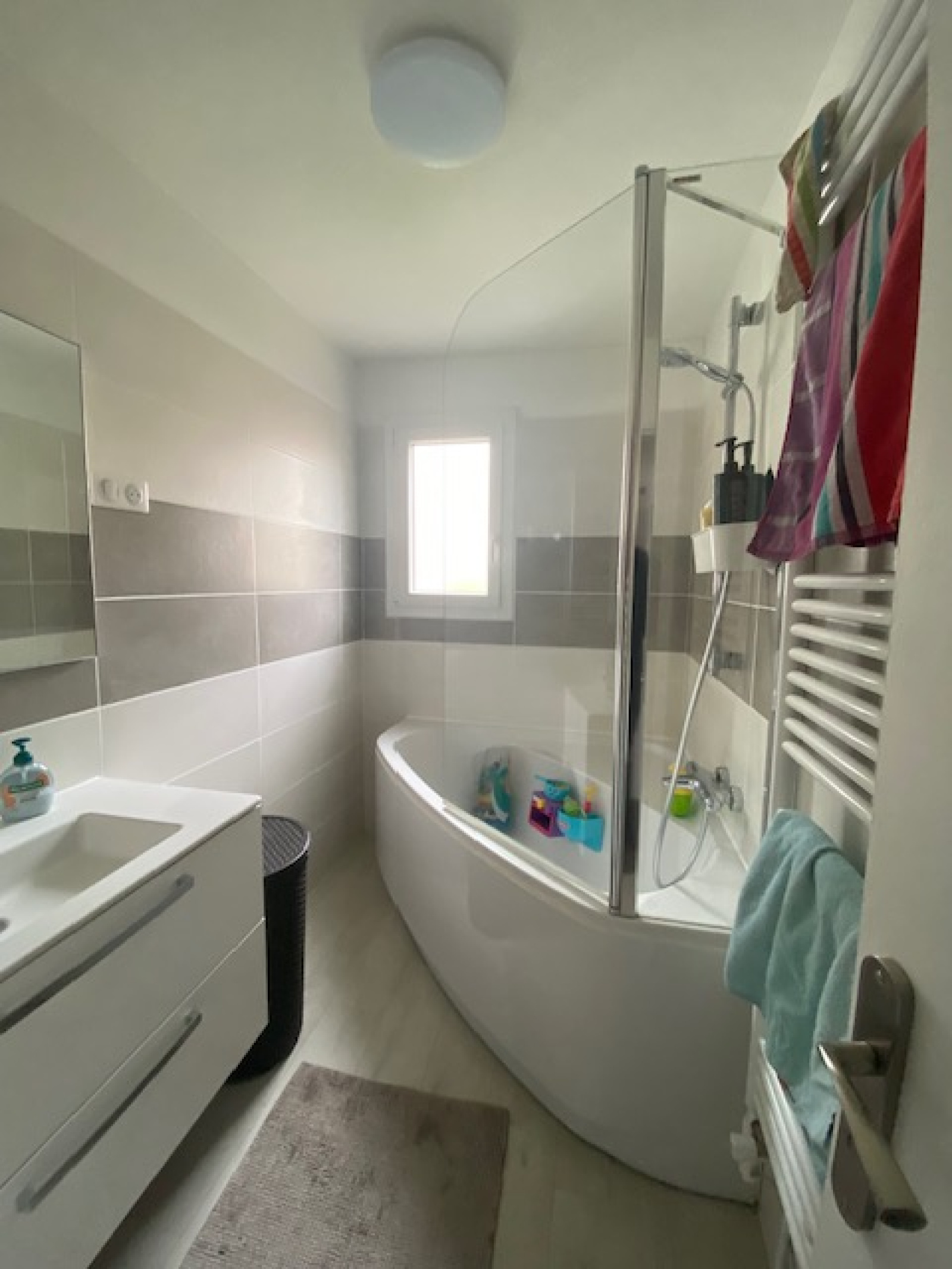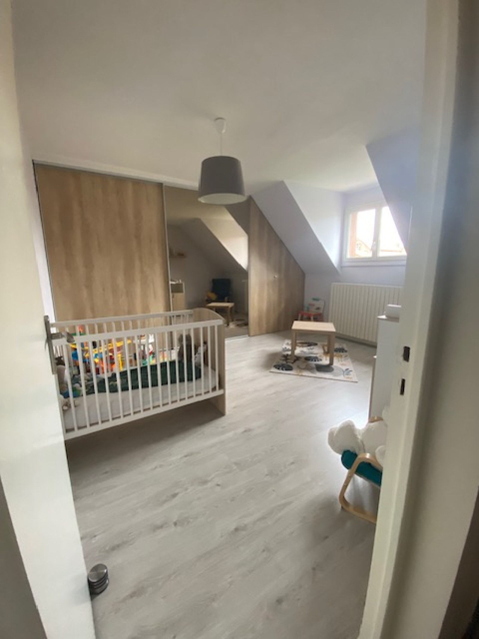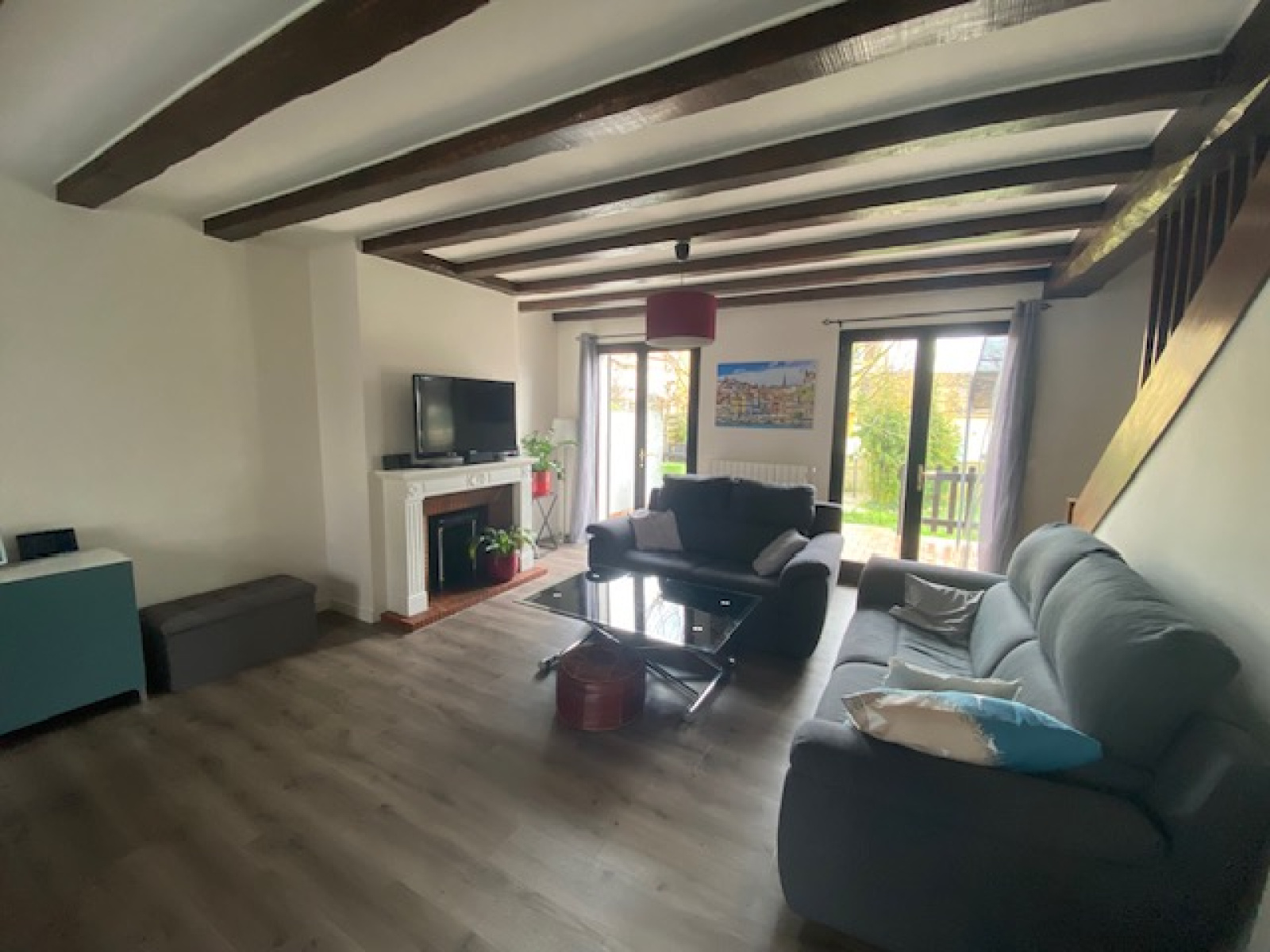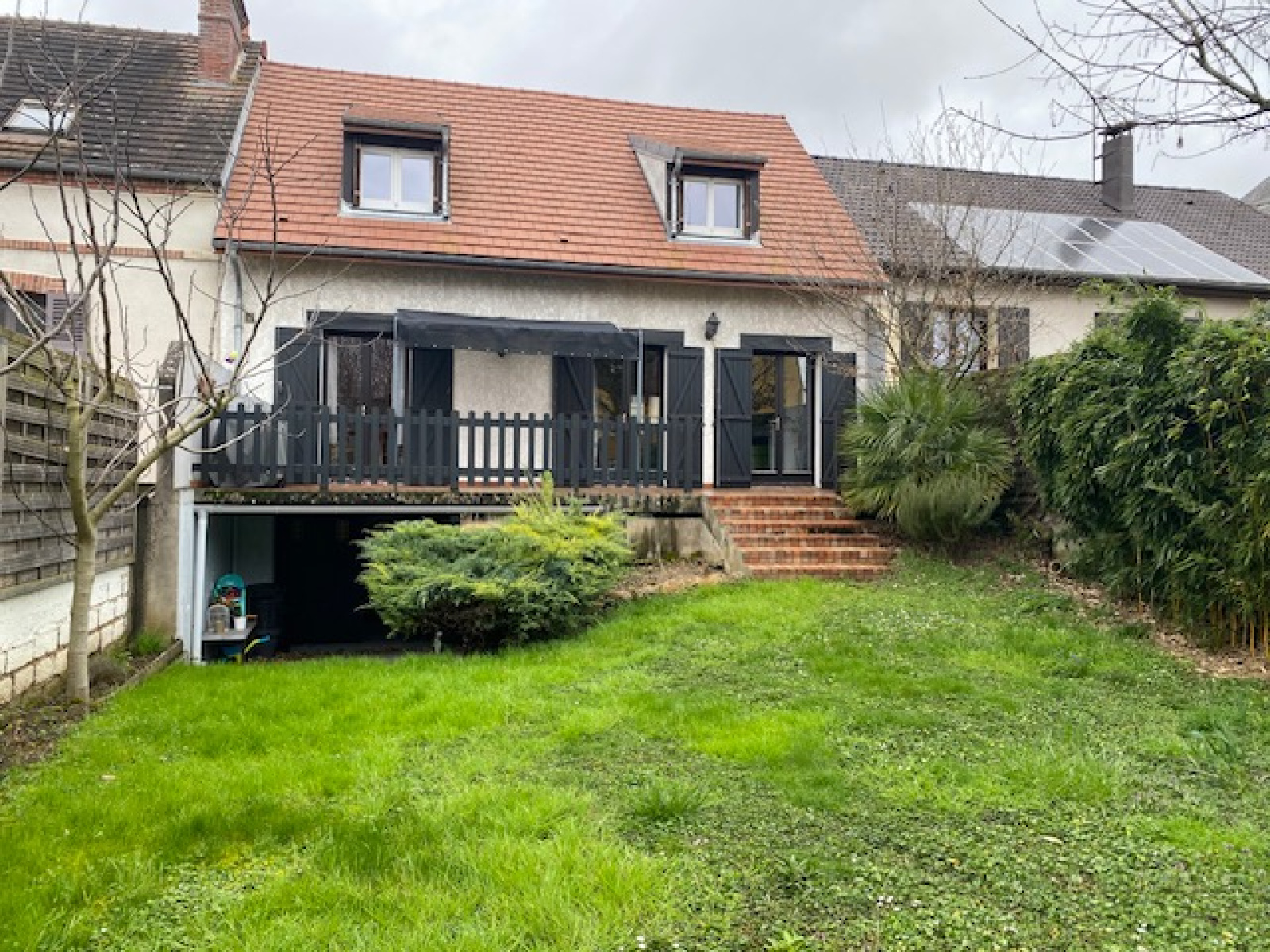 Jolie maison de ville en parfait état . Entrée sur grande pièce de vie traversante avec portes fenetres donnant accès à une grande terrase, cuisine équipée avec accès terrasse, un wc, une salle de bains, un bureau pouvant servir de chambre. Au premier étage: un palier desservant deux grandes chambres avec placard, une chambre d'enfant / bureau, une salle d'eau, wc. Au sous sol: une grande buanderie/ chaufferie, un garage avec porte électrique,joli jardin arboré. toiture récente, rénovation décente de la salle de bains, salle d'eau et wc. Proche tous commerces et gare