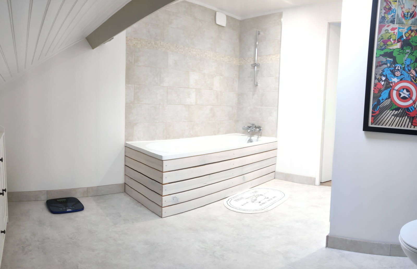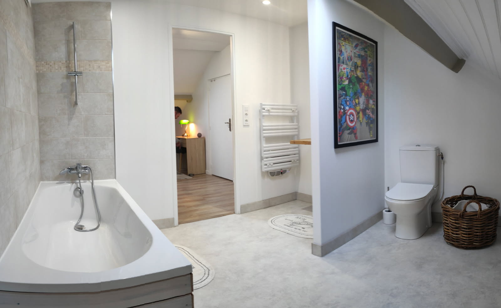 À l’étage, le palier dessert deux belles chambres et une salle de bains équipée d’un WC, offrant un espace nuit confortable et bien agencé.