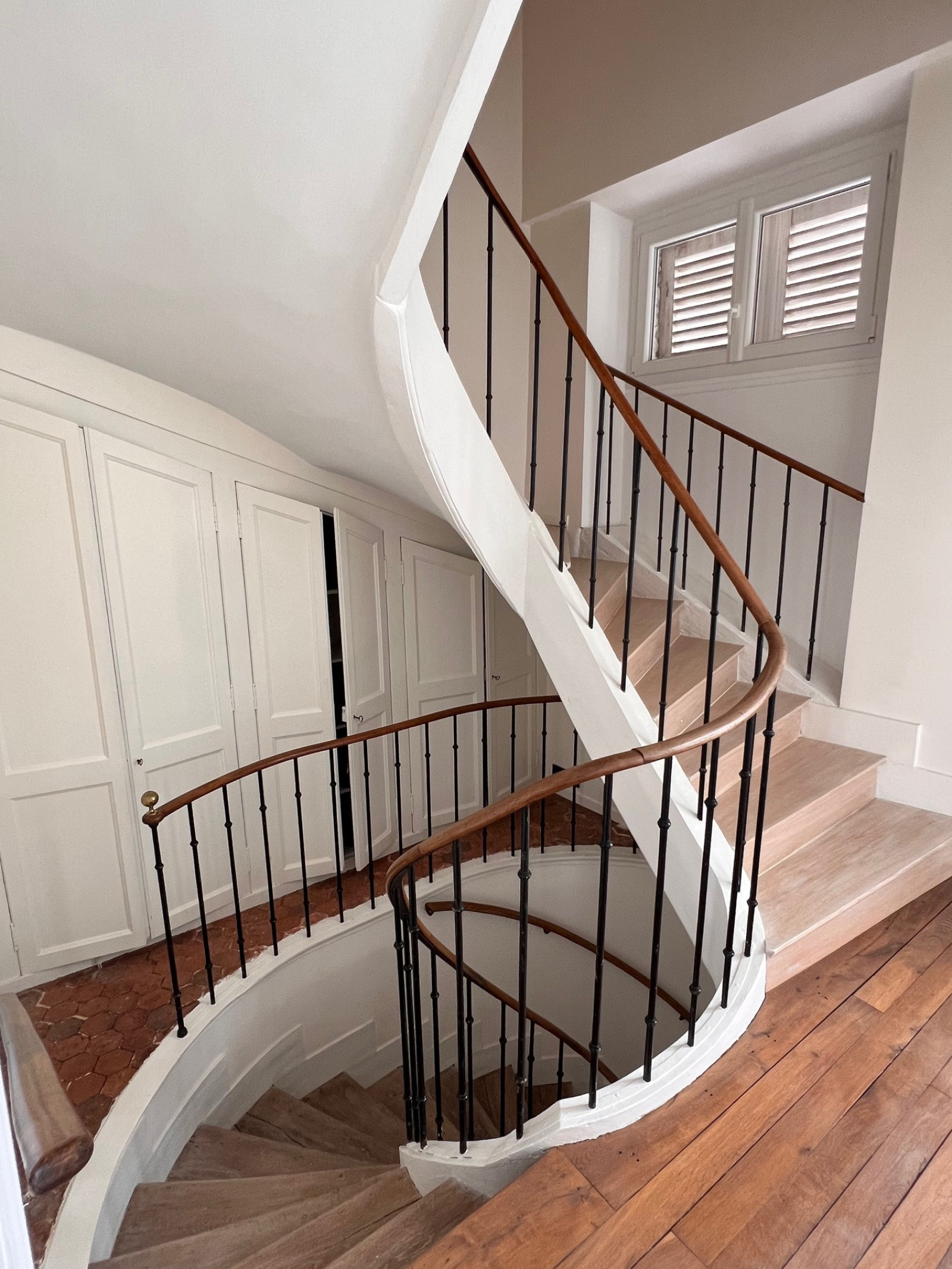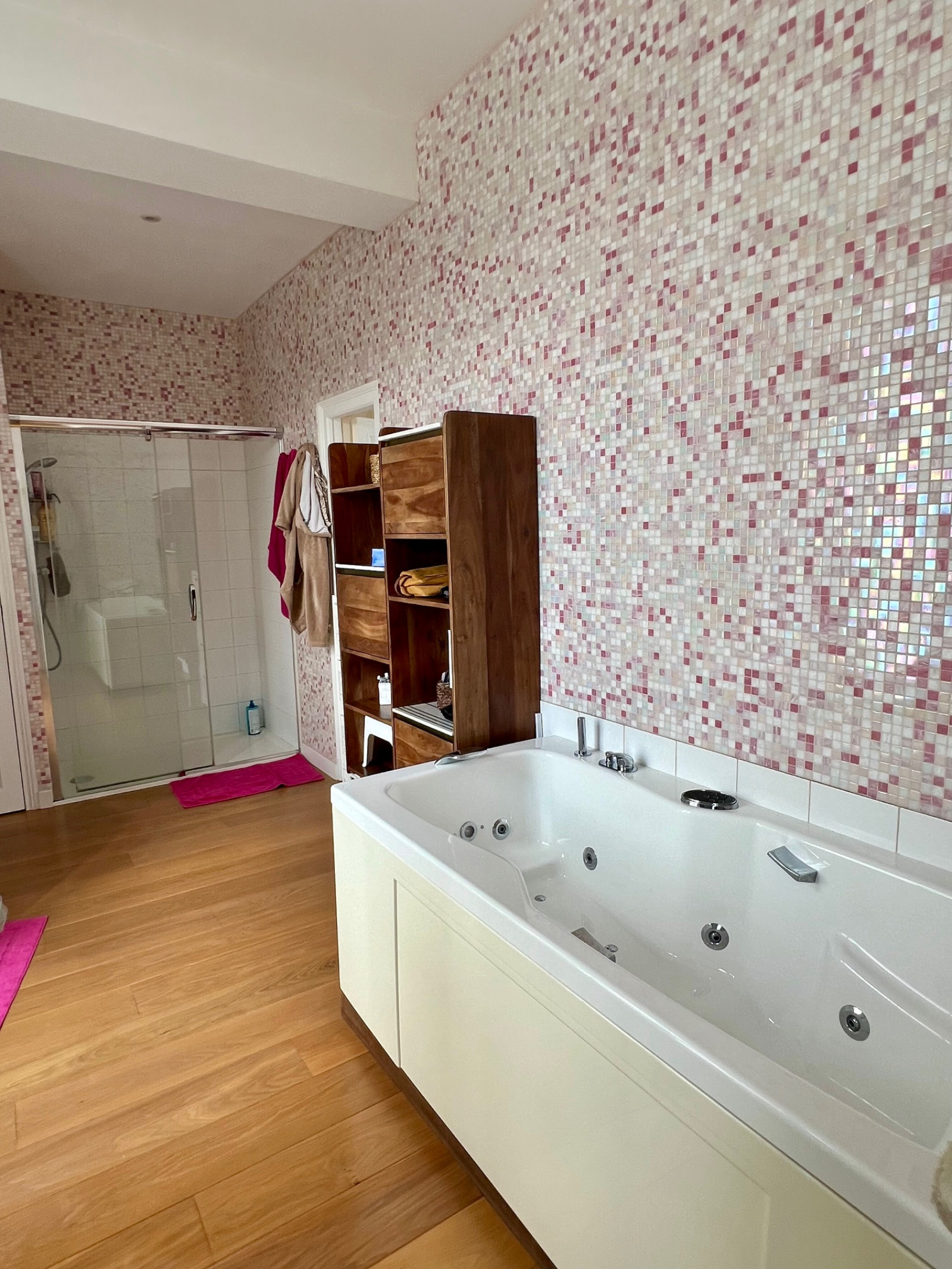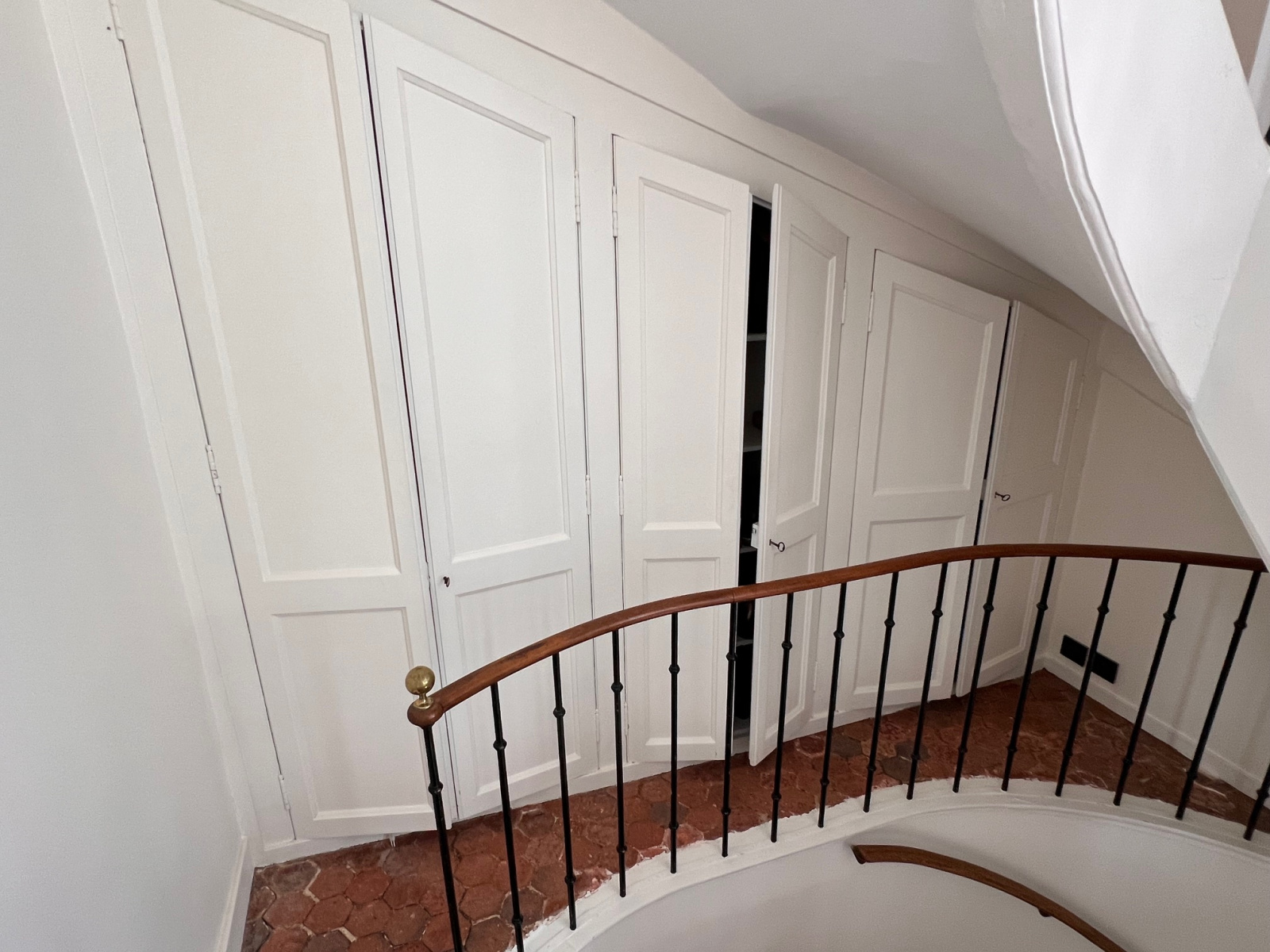 Au premier étage un palier avec des placards anciens dessert deux grandes chambres et leurs salles de bains avec baignoire et douche, un dressing, une chambre et une salle d'eau.
