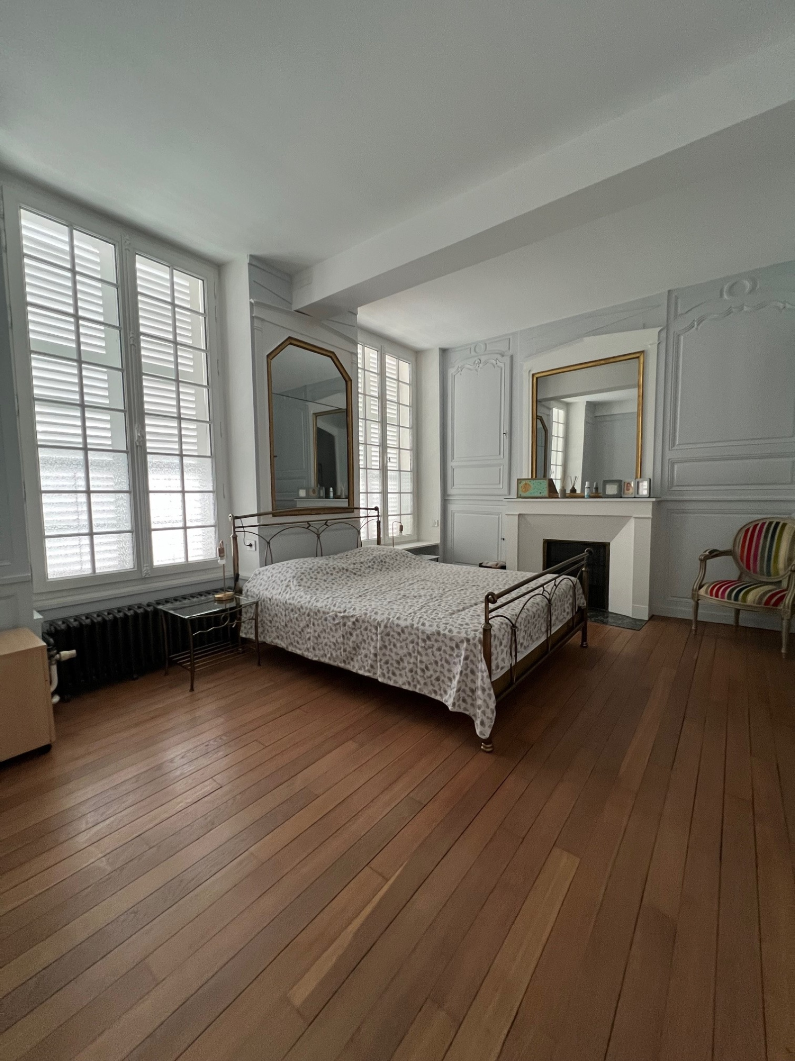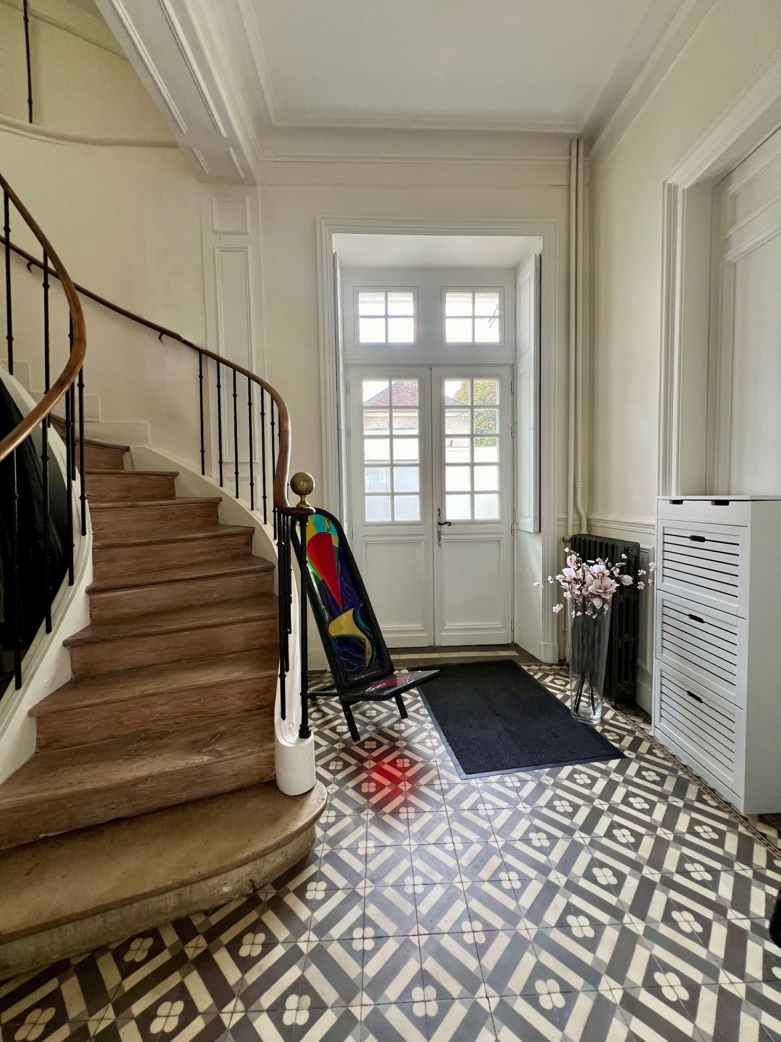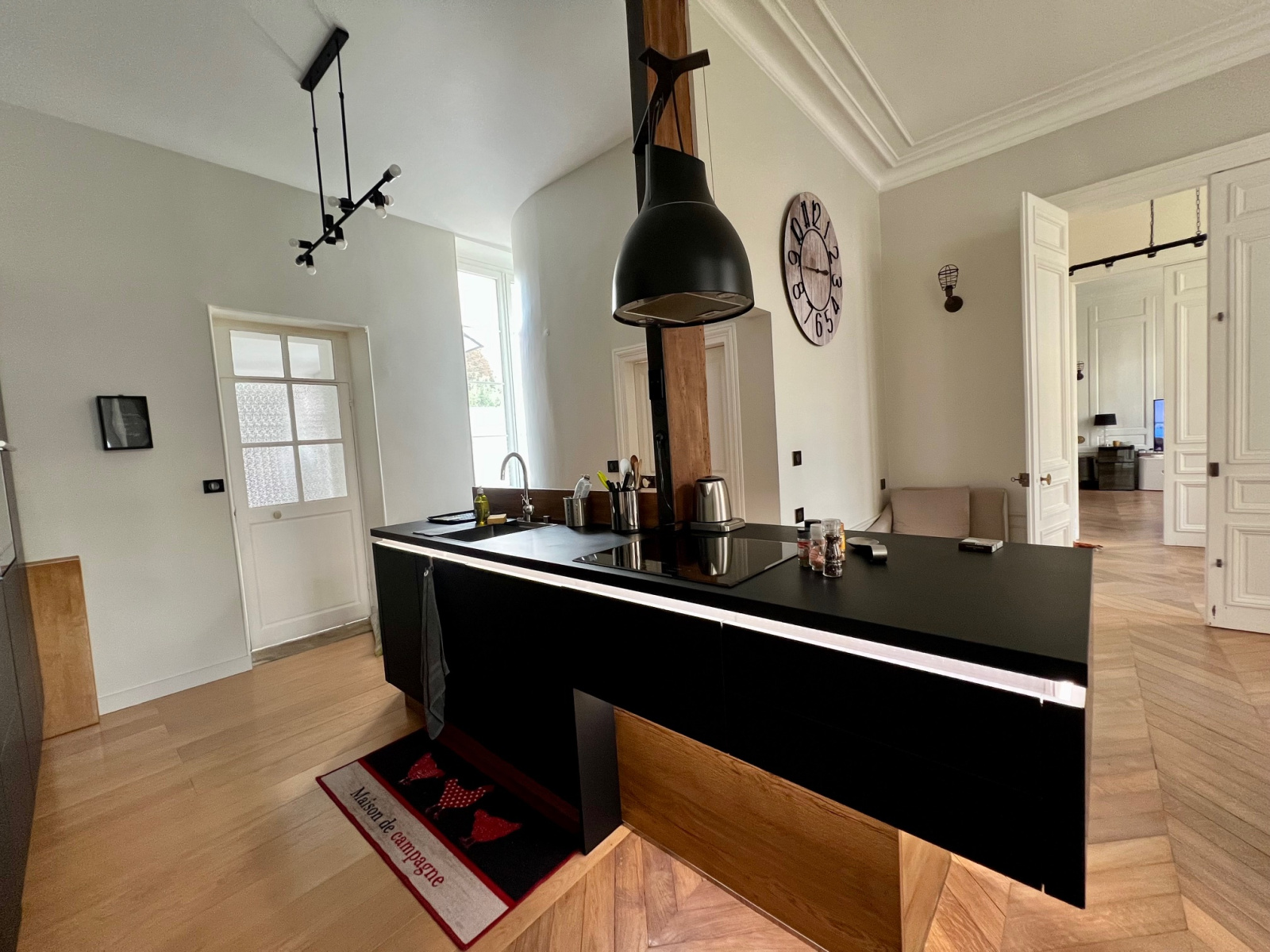 Il se compose d'un hall d'entrée traversant avec un magnifique escalier et un accès sur le jardin, une pièce de vie avec une cuisine intégrée, un salon avec d'authentiques boiseries et parquet, une grande chambre de plain pied, une salle d'eau avec wc, une buanderie, une entrée indépendante, un bureau.