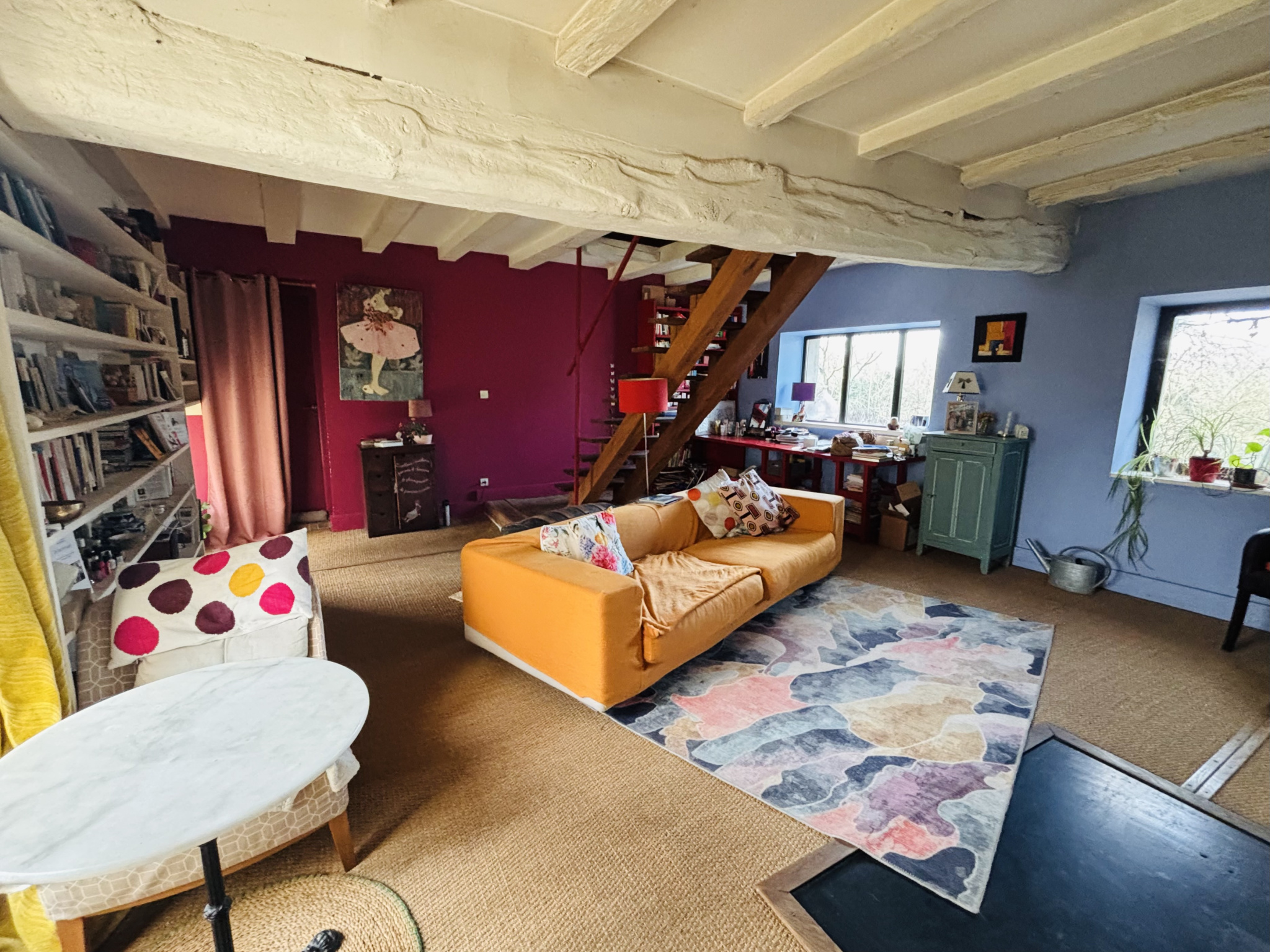 - Grande pièce de 50 m² très lumineuse, avec poêle à pellets, point d’eau et WC indépendant