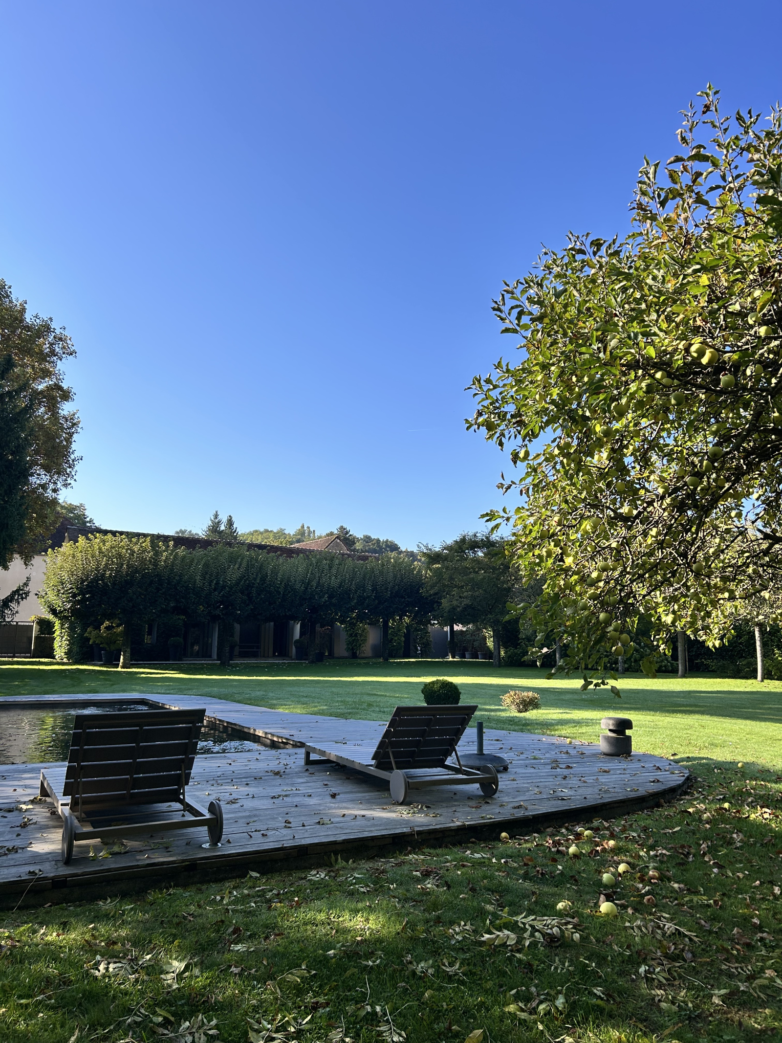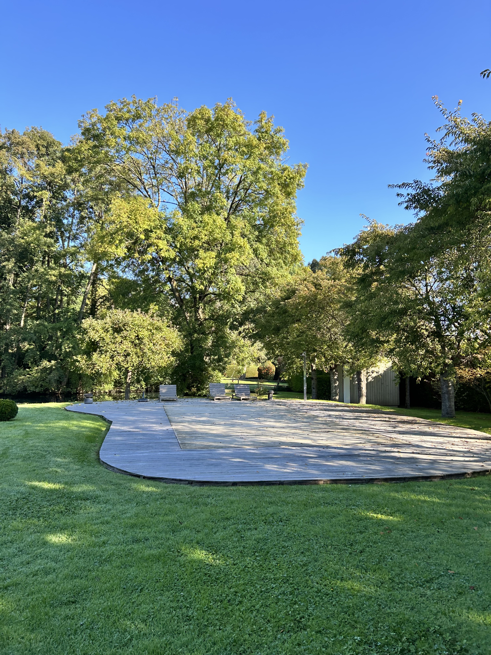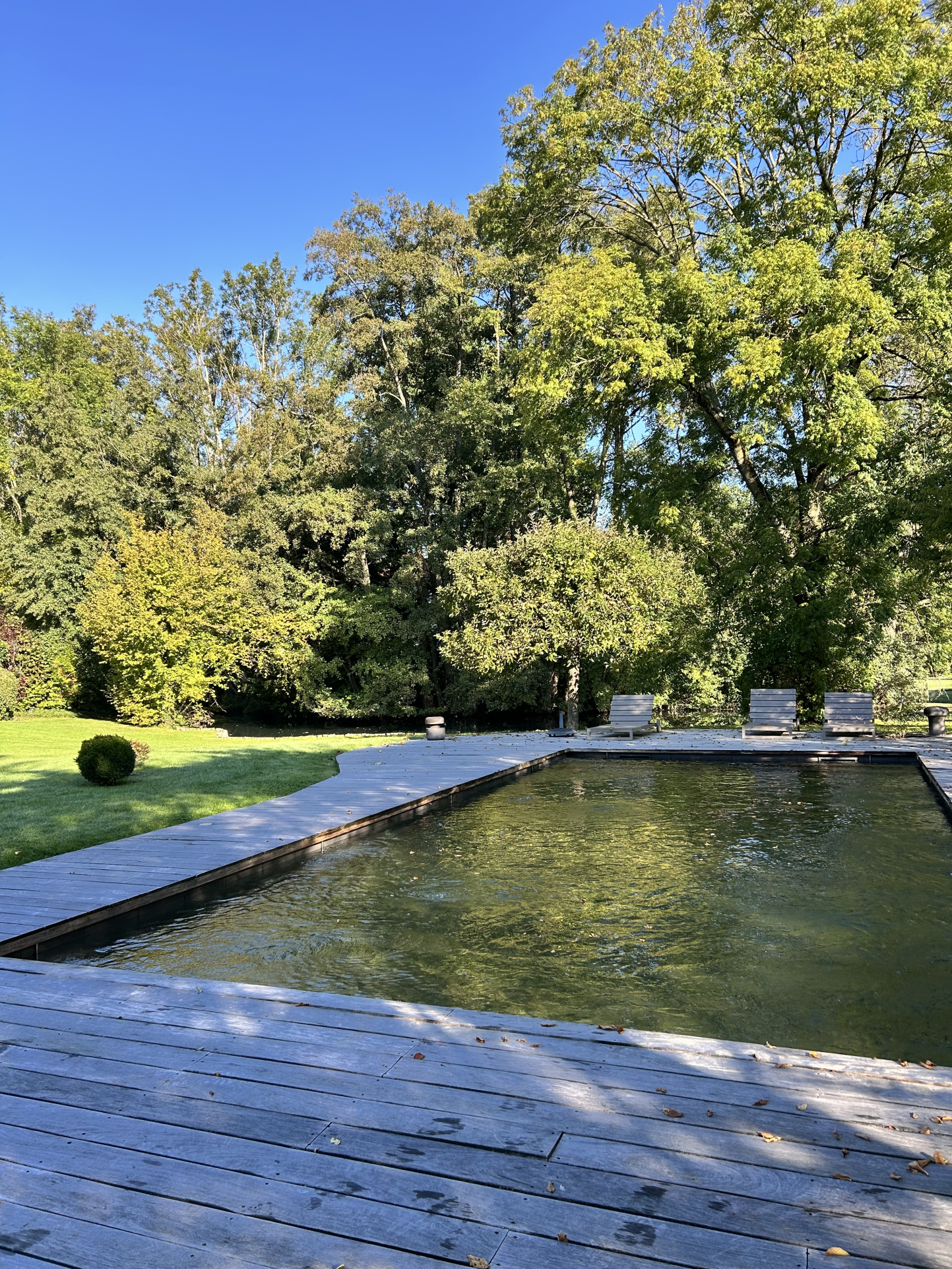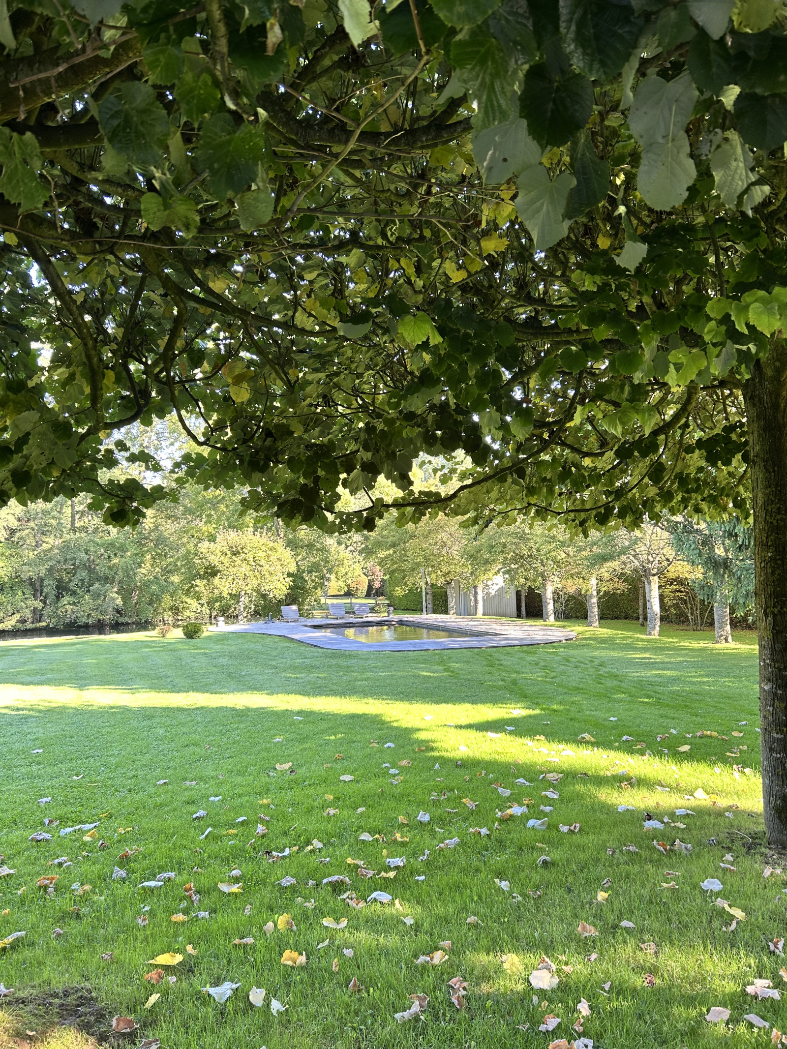 Le jardin, magnifiquement paysagé, abrite une piscine en bois creusée avec fond mobile permettant de la transformer en terrasse, un local technique, ainsi qu’un charmant étang.