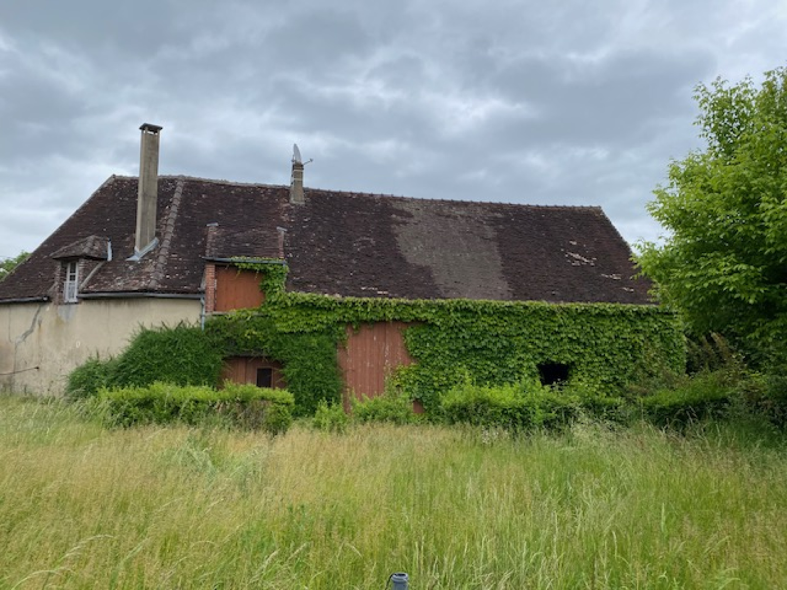 Un troisième batiment composé d'un appartement : une cuisine, une salle de bains,wc, deux grandes pièces, une chaufferie, un garage, un auvent . L'ensemble est situé sur un terrain d'environ 9000 m2 . Gros potentiel , travaux à prévoir !