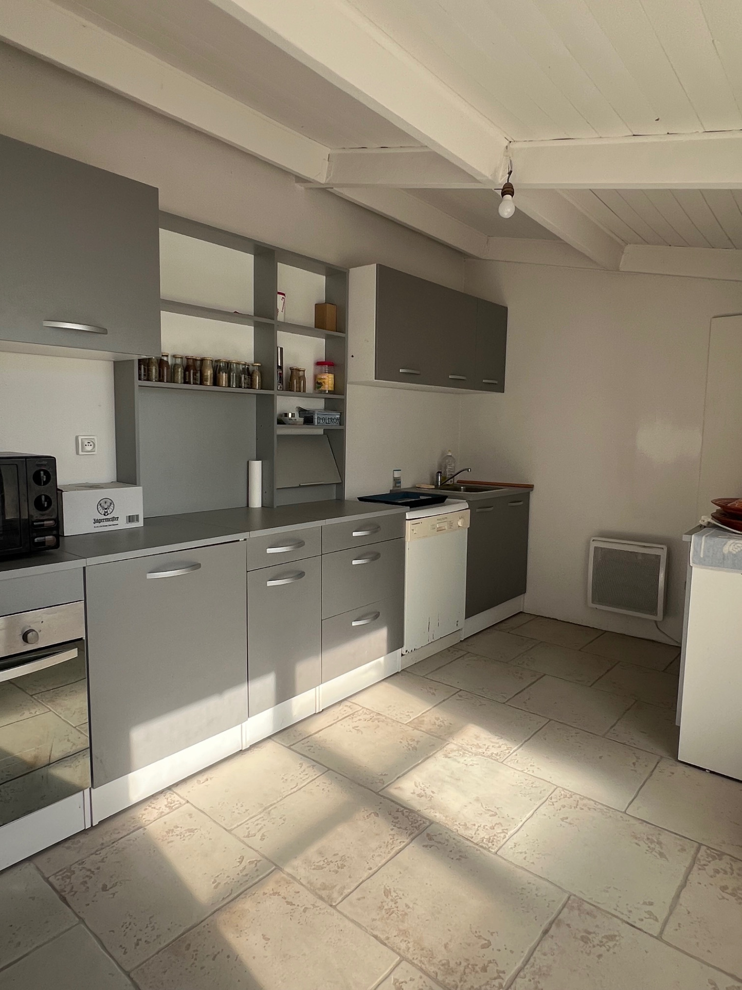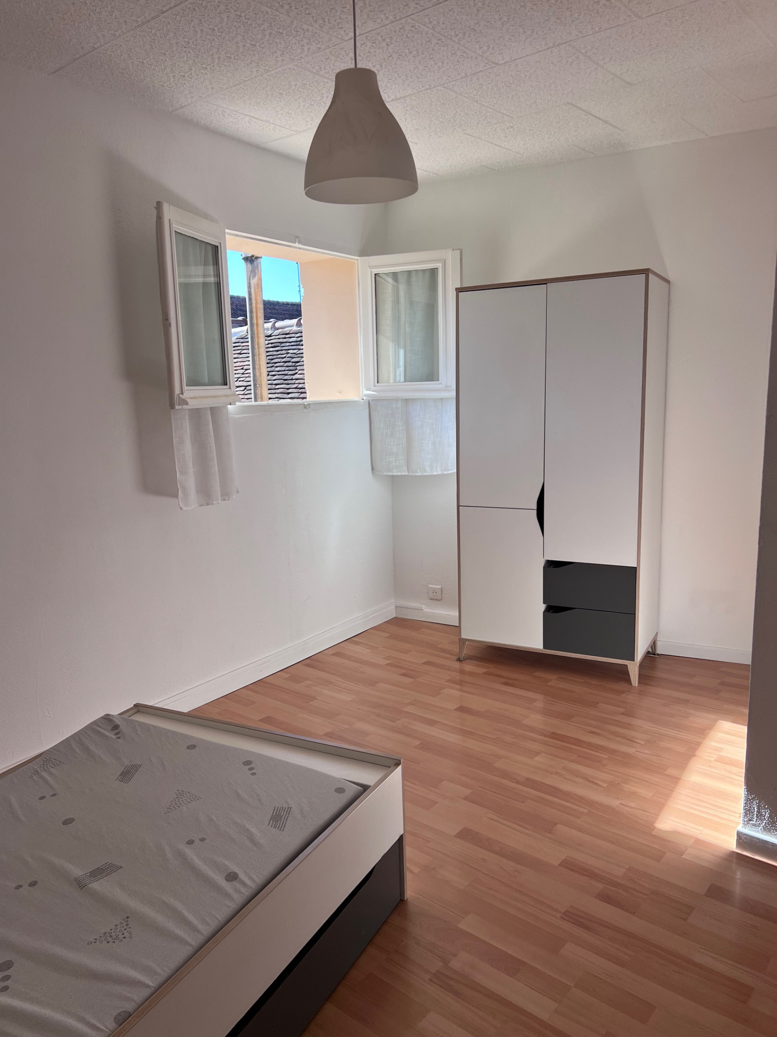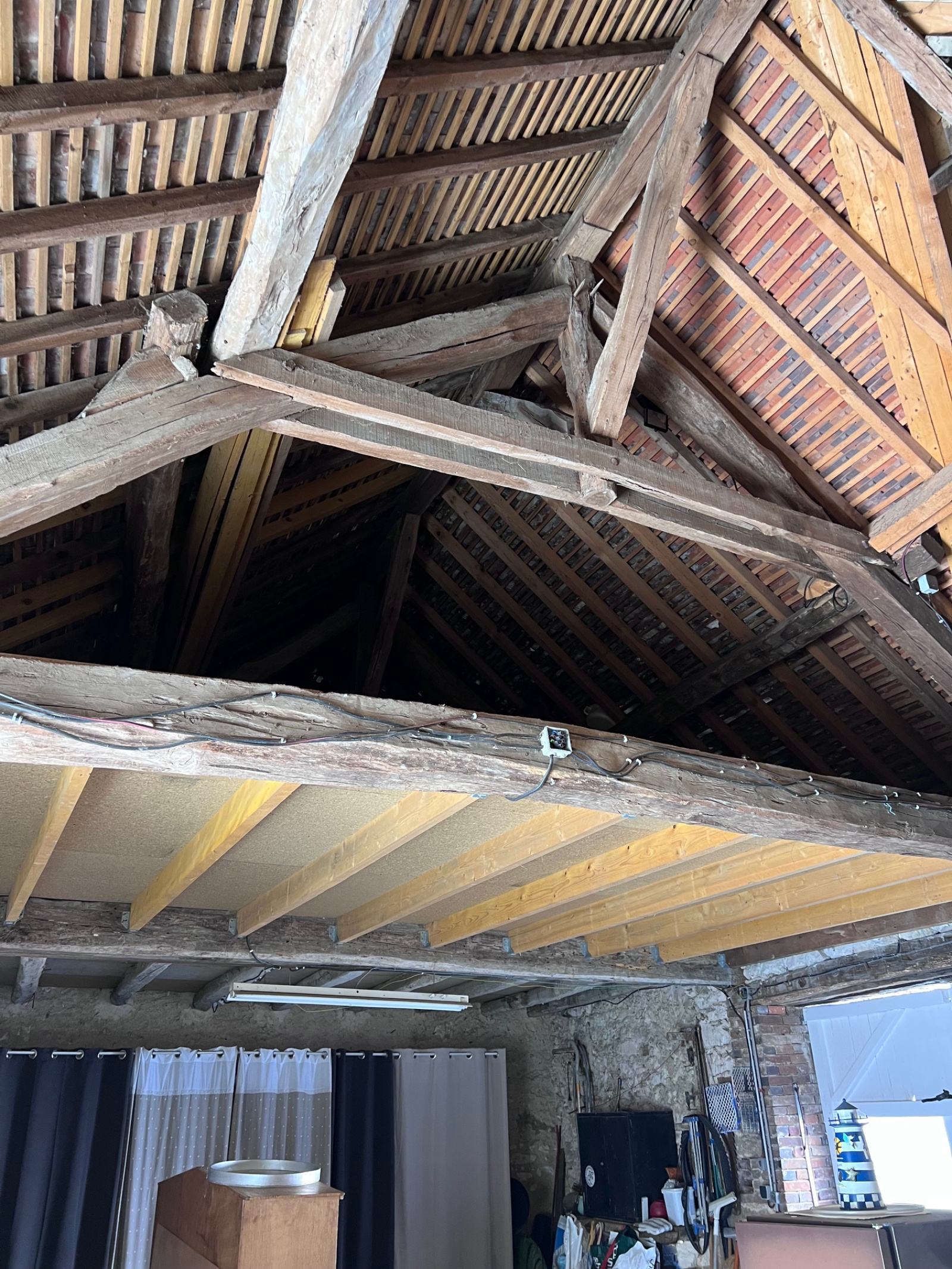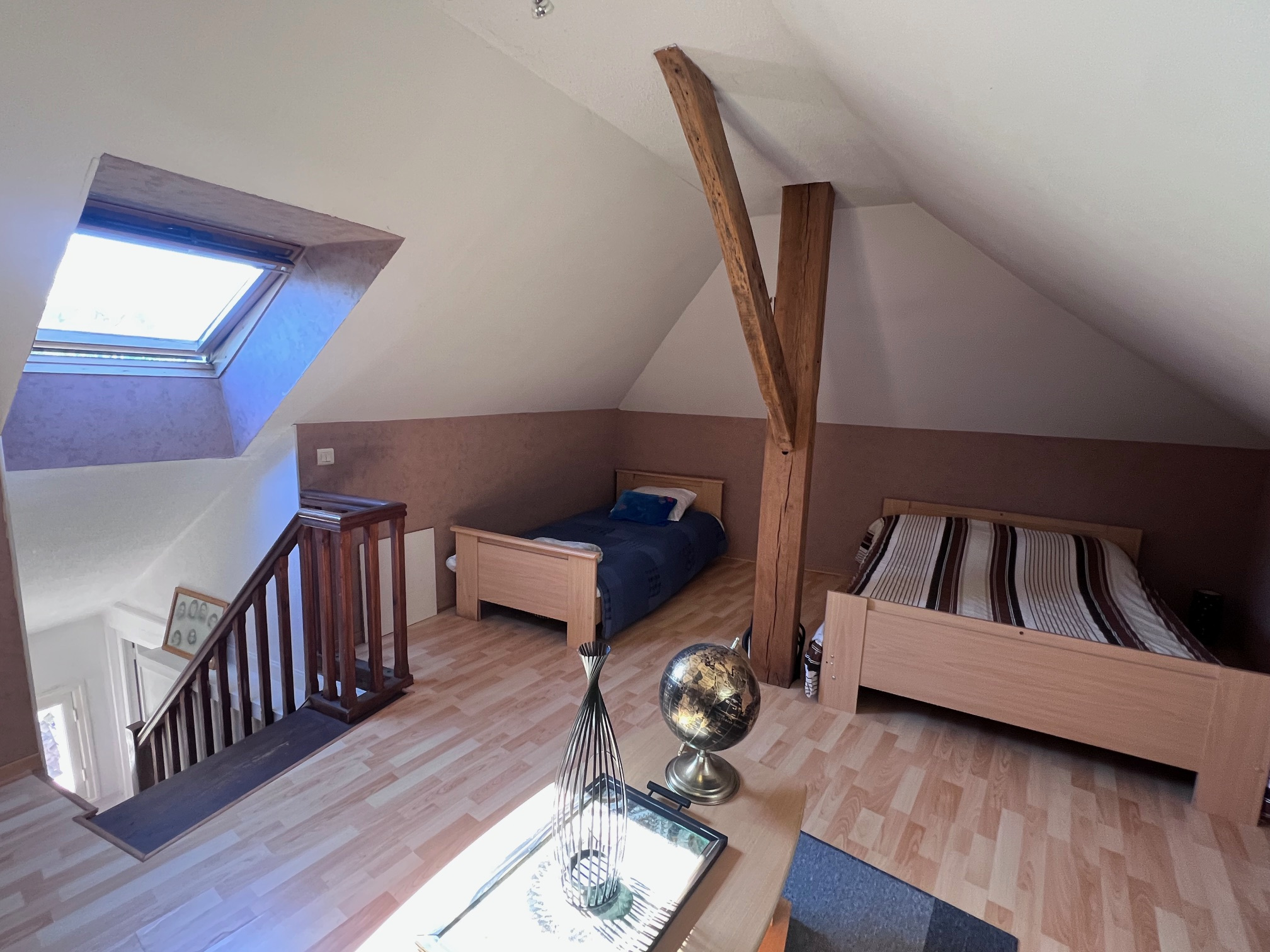 Le deuxième étage est partiellement aménagé, avec un coin chambre et une partie grenier.