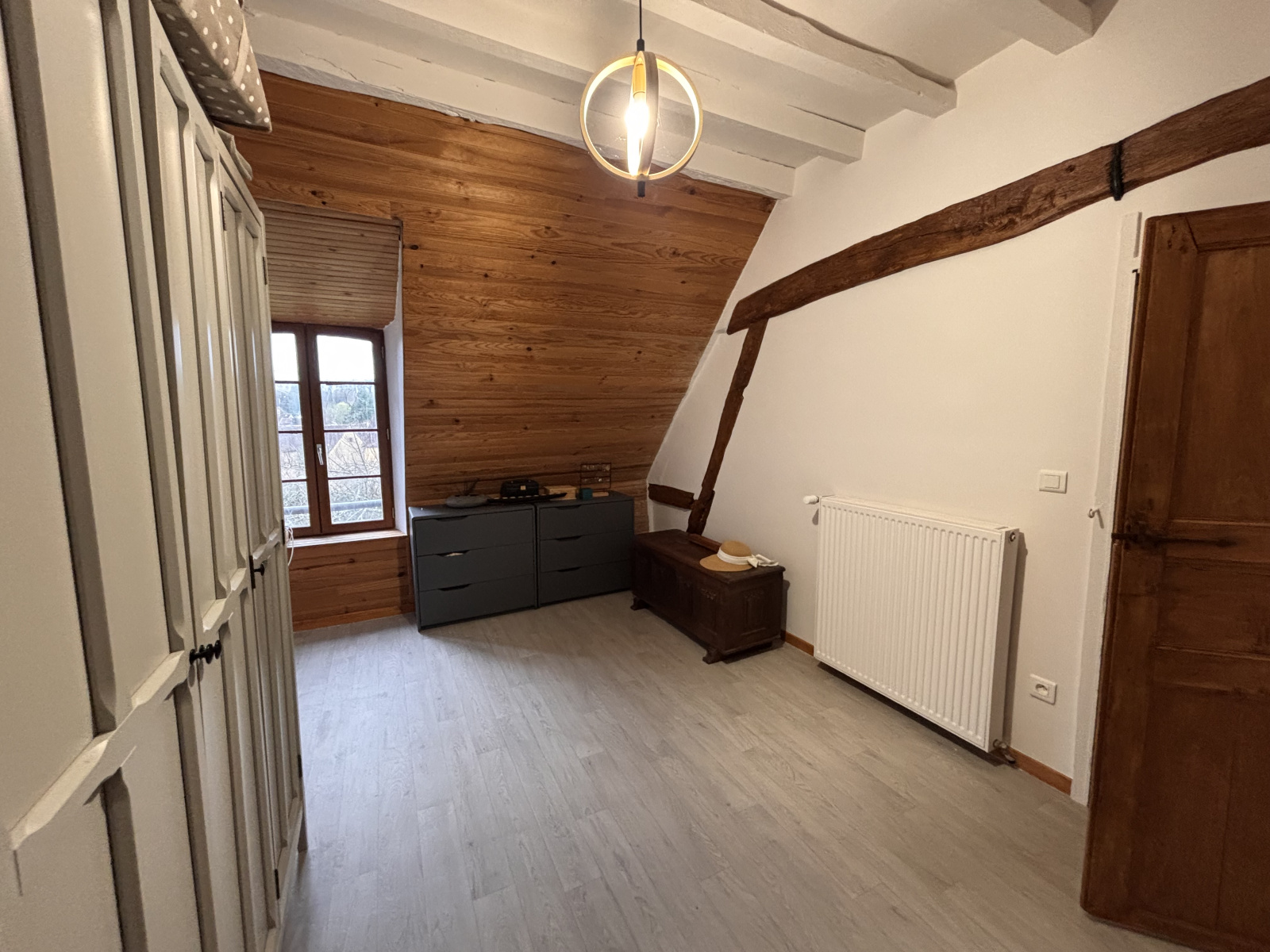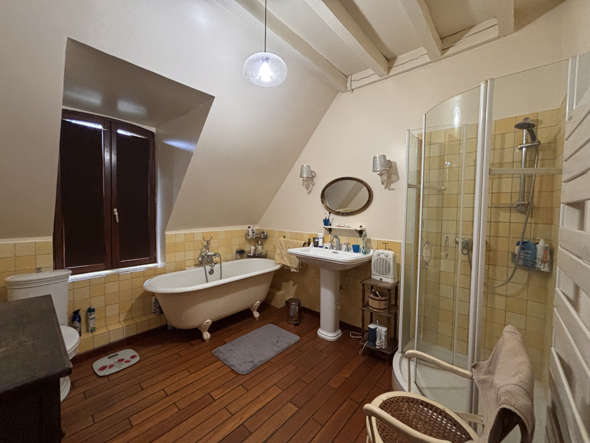 Vous y trouverez également une salle de bains complète avec baignoire, douche et WC, ainsi qu’un dressing fonctionnel.
