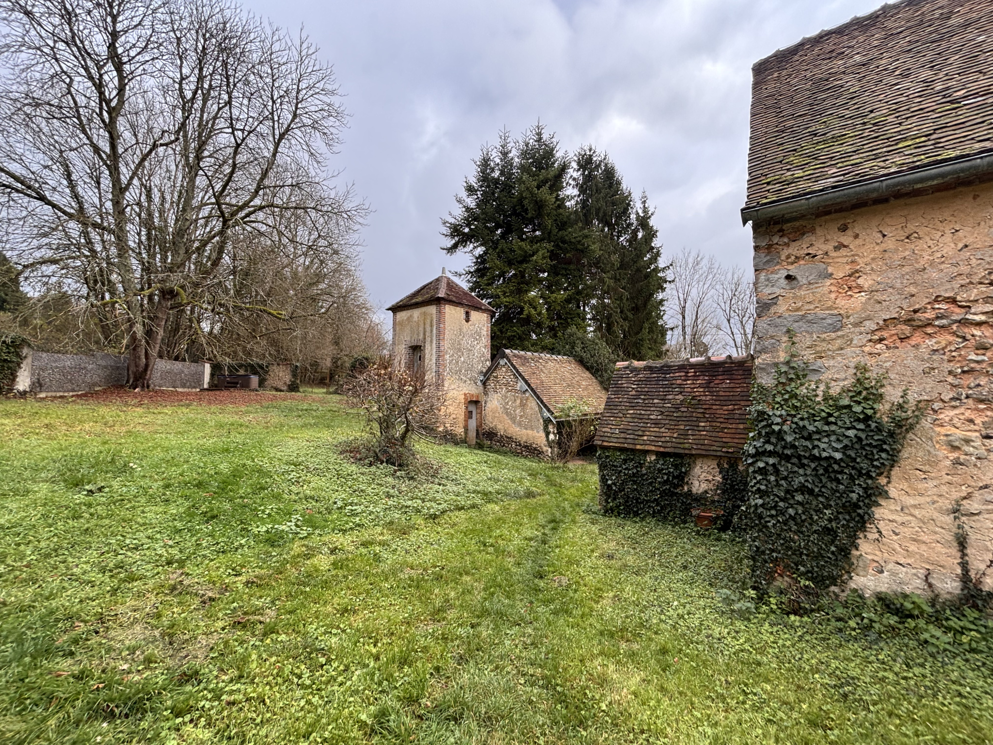 À l’extérieur, vous profiterez d’un préau, d’une cave, d’une piscine creusée, ainsi que de trois granges — un véritable atout pour créer des espaces supplémentaires selon vos projets (atelier, stockage, aménagements divers).