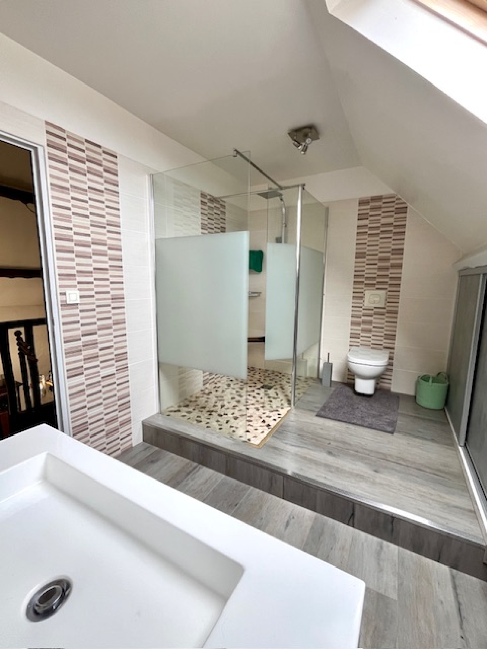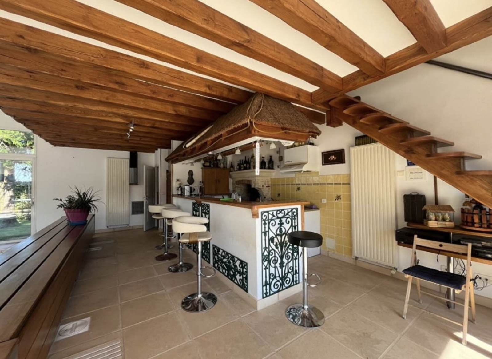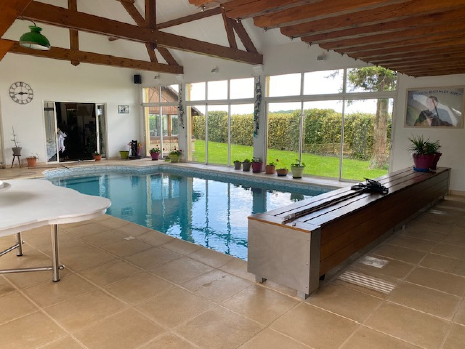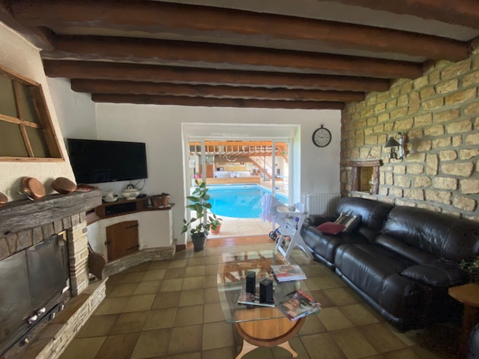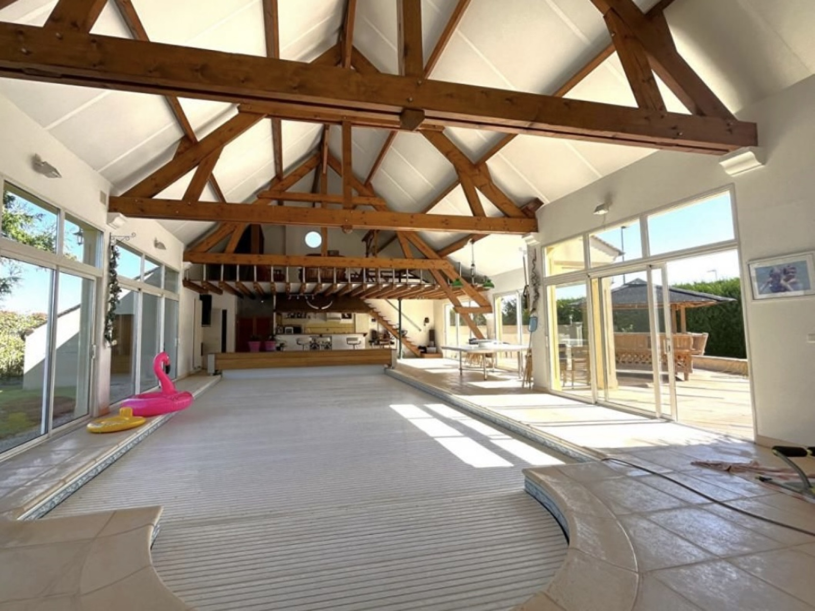 Au rez-de-chaussée, une vaste pièce de vie avec cheminée s'ouvrant sur une piscine couverte et un sauna. Une cuisine ouverte, une buanderie, un bureau, une grande chambre, une salle d'eau et wc, une cave. A l'étage une pièce cathédrale, un espace ouvert idéal pour une bibiothèque, un bureau ou salle télévision, ainsi que deux chambres et une salle d'eau avec wc. Un garage et une salle de jeux, un auvent pour barbecue. Un local professionnel équipé de panneaux photovoltaïques et un équipé de panneaux solaires.