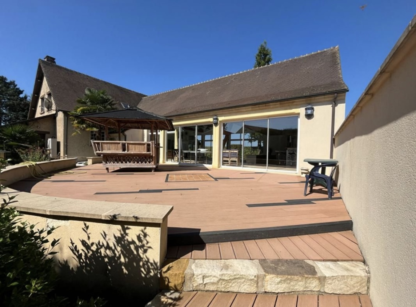 Le tout sur un jardin arboré avec une marre et de grandes terrasses.